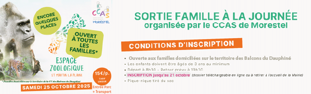 1ère Sortie Famille Le CCAS de Morestel organise sa 1ère sortie famille, le samedi 25 octobre à l’espace zoologique de…